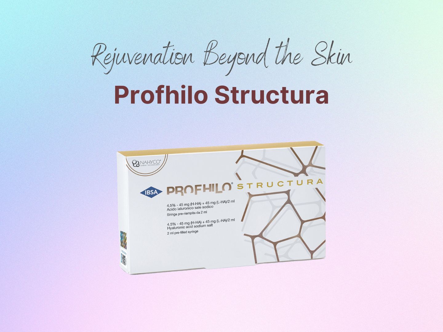 Profhilo Structura is an advanced injectable treatment designed to improve not just your skin, but the supporting layers beneath it. It is made with a high concentration of hyaluronic acid (a substance naturally found in our skin) using special NAHYCO®️ Hybrid Technology. Unlike traditional fillers that add volume, Profhilo Structura works by stimulating your skin and tissues to regenerate themselves. It helps improve firmness, hydration, elasticity, and facial support — all while keeping your results natural and subtle.