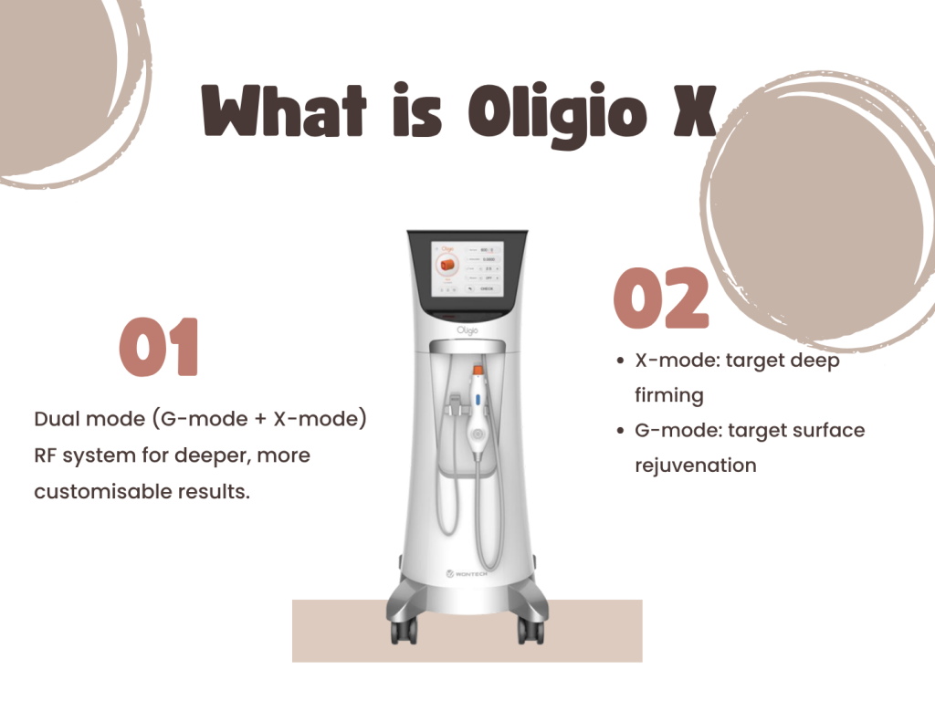 1.  It is the latest evolution of the original Oligio treatment, upgraded with dual mode (G-mode + X-mode) RF system for deeper, more customisable results.